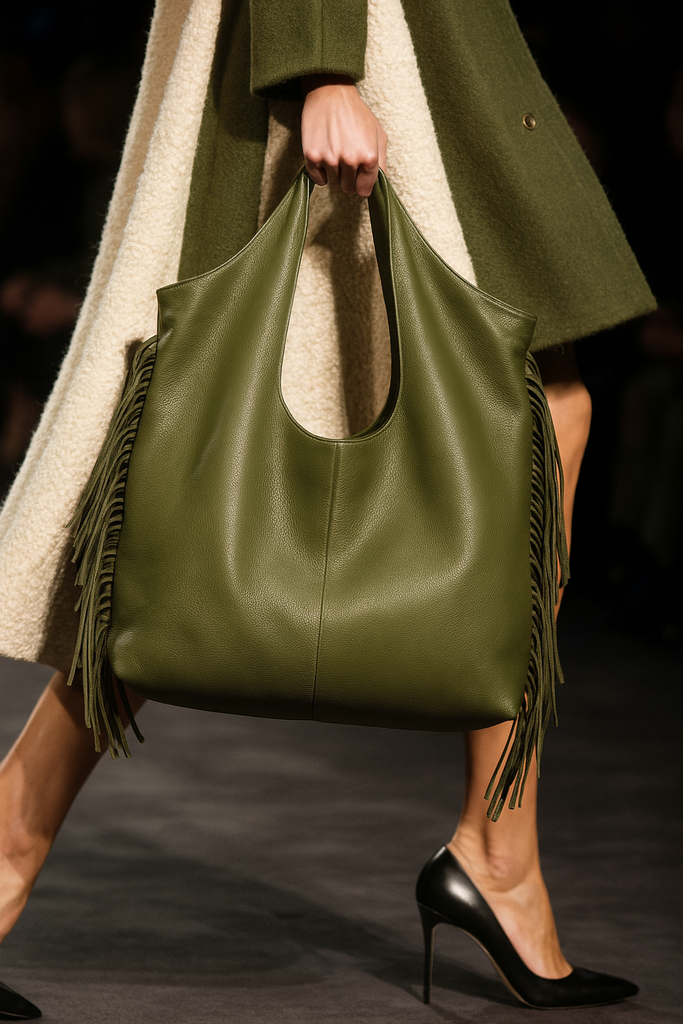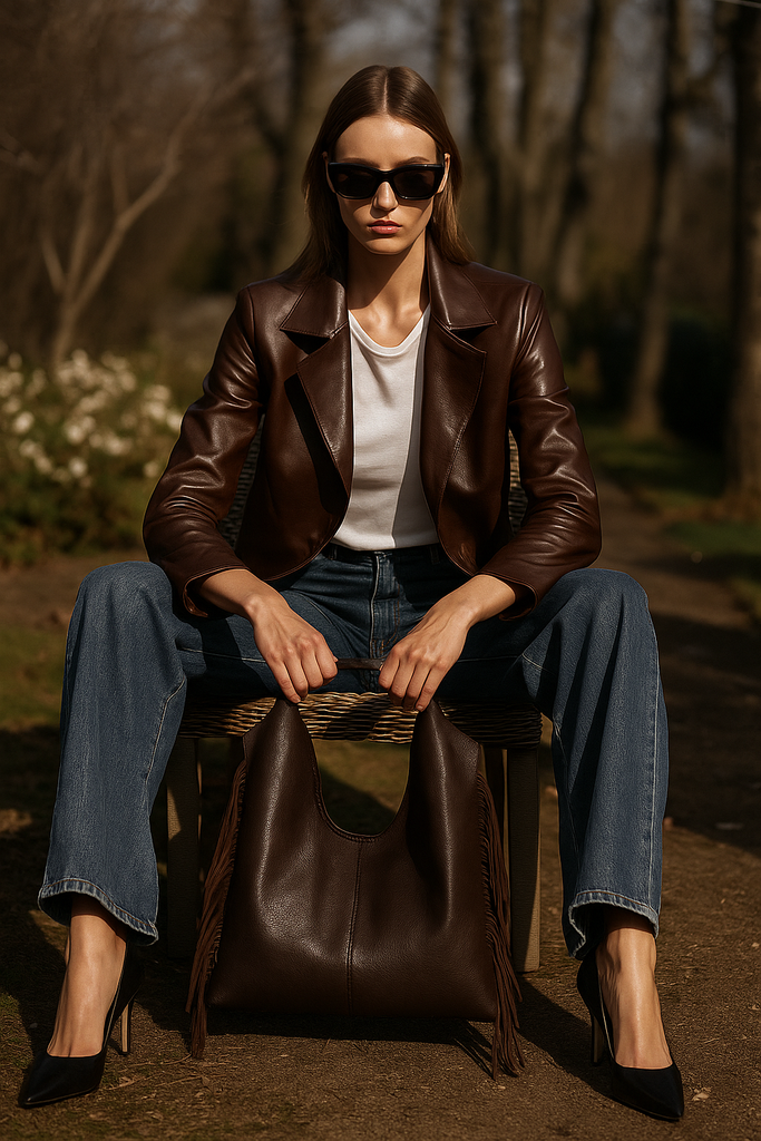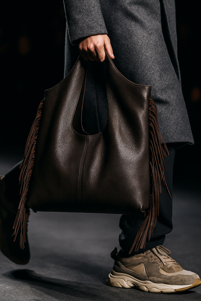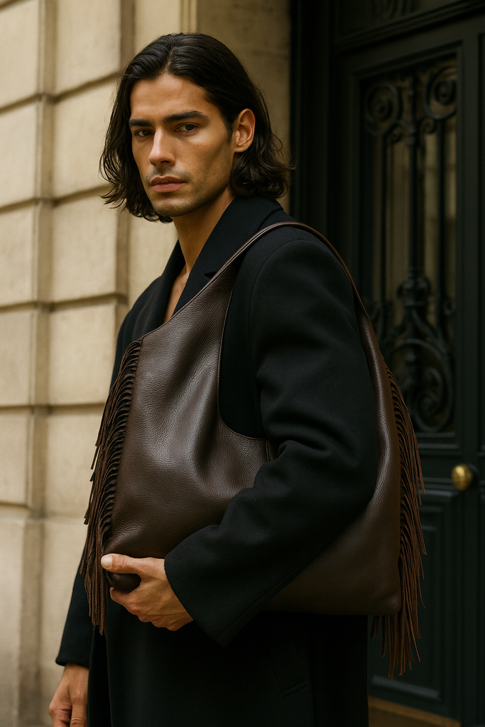 Crafted from luxuriously soft pebble leather, this oversized shoulder bag features elegant fringes and a unisex design ideal for everyday use. Its generous dimensions of 40cm x 45cm x 8cm offer ample space, while the lightweight 0.4 kg construction ensures comfort. Proudly made in Italy, this shopper bag combines practicality with refined style.