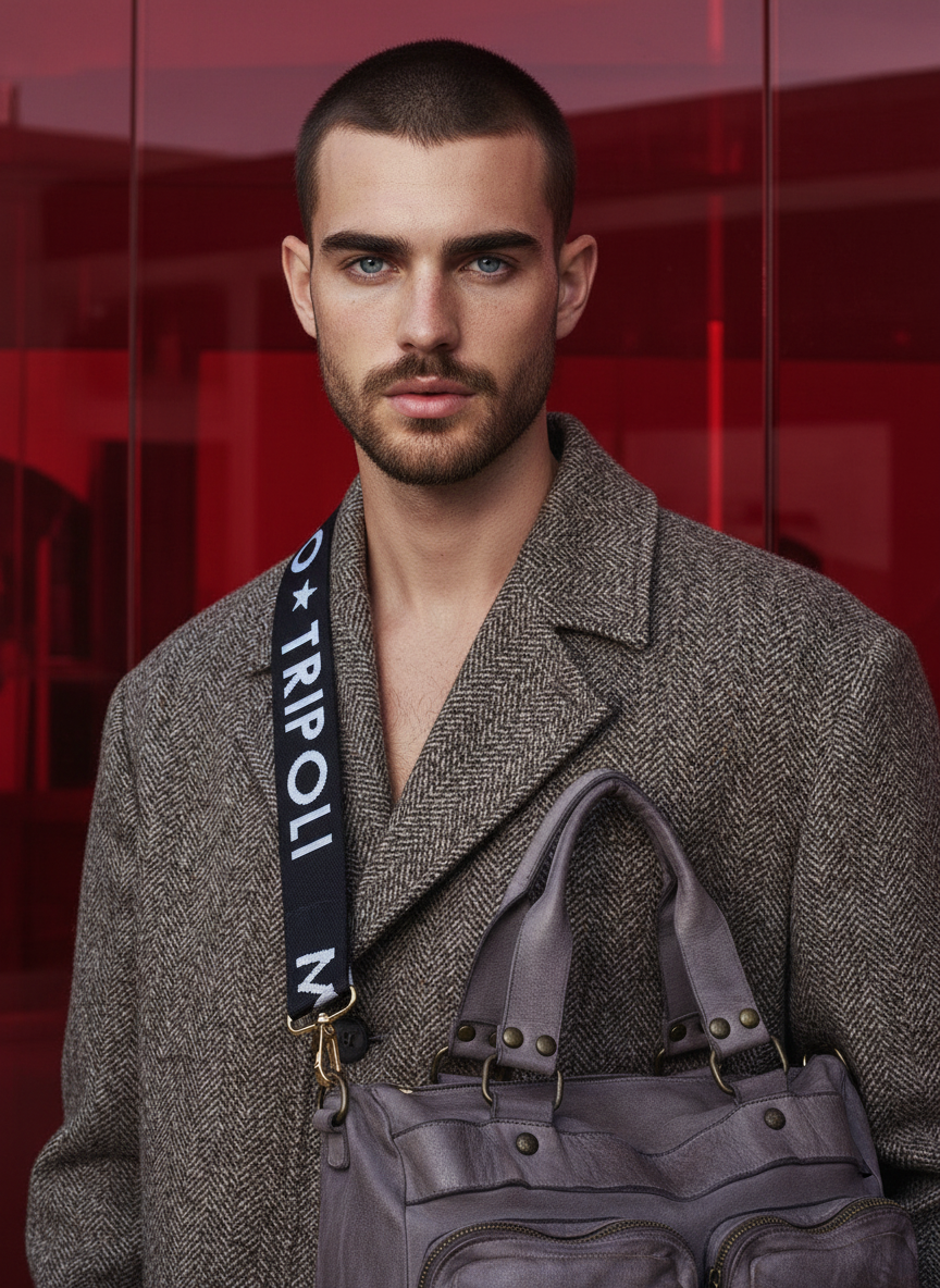Crafted in Italy, this grey washed leather bag features a genuine leather strap that is removable for versatile wear. It includes an interior zip pocket, a dedicated mobile phone compartment, and two zippered pockets on the front for organized storage. It combines elegant design with practical functionality.