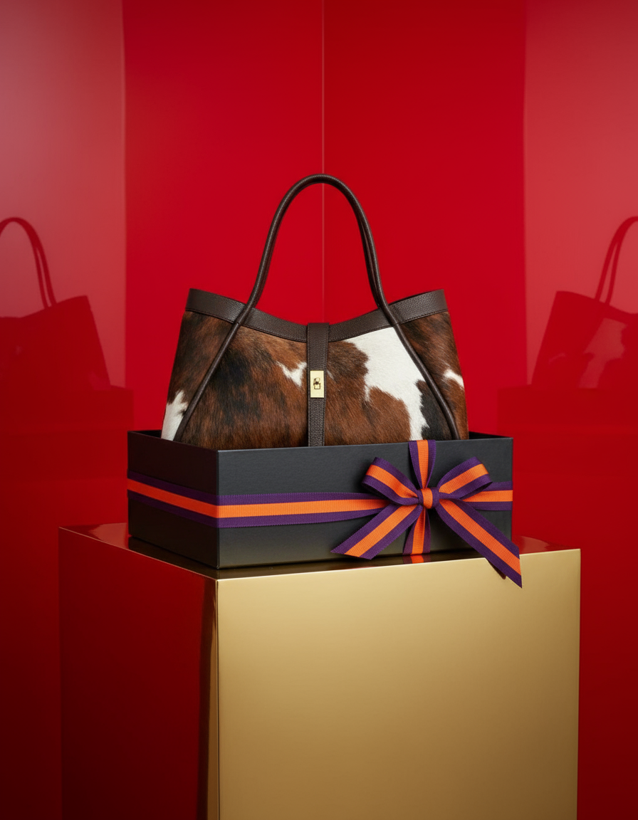 KARLA , COWHIDE LARGE TOTE BAG , CHOCOLATE & MULTI