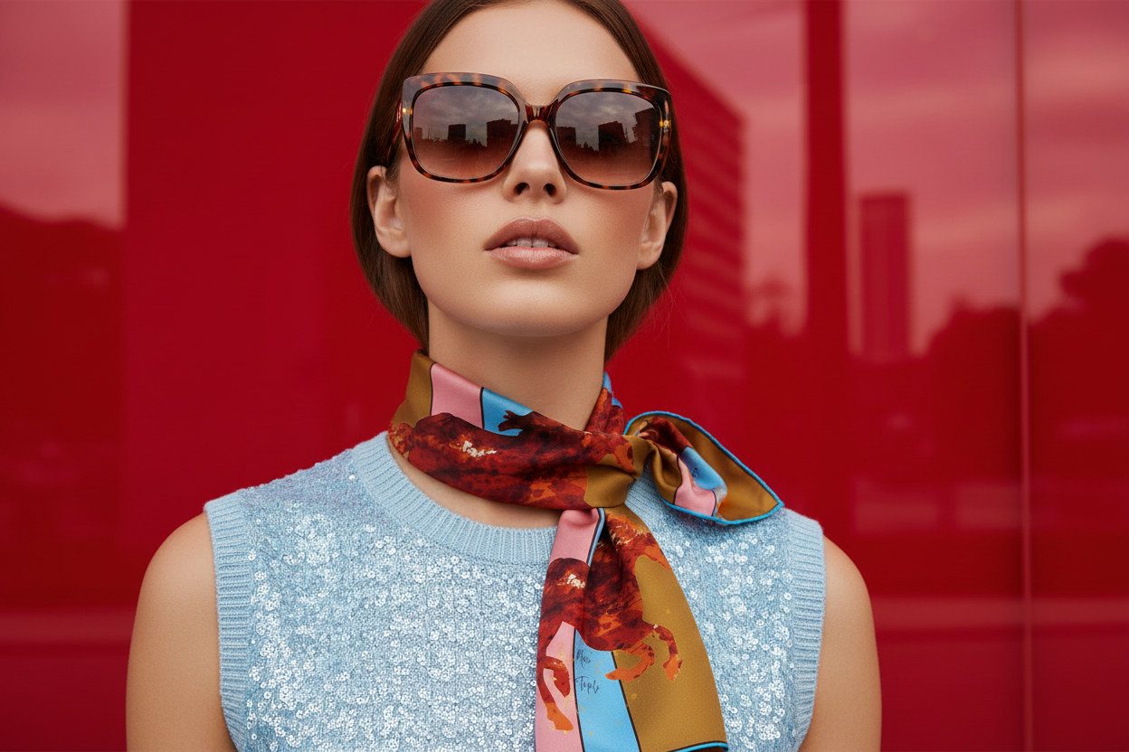 Indulge in the decadence of our Silk Satin Scarf, crafted from sumptuous fabrics and imbued with vibrant hues. A perfect complement to any outfit, with measurements of 90 cm x 90 cm.