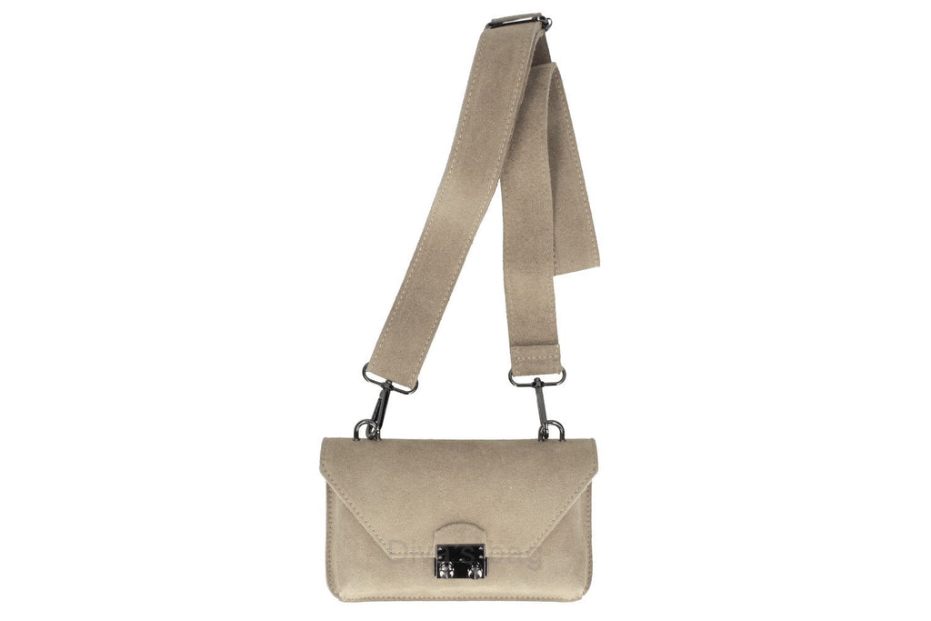 JOHNATHAN , SUEDE CROSSBODY BAG , TAUPE