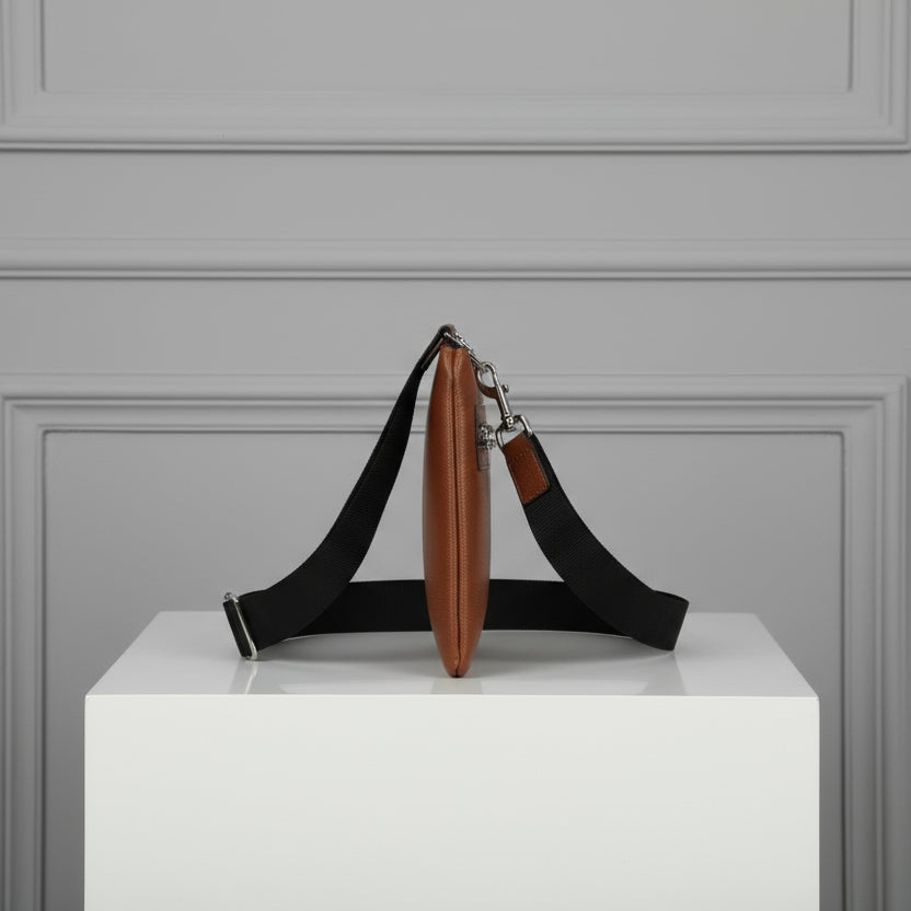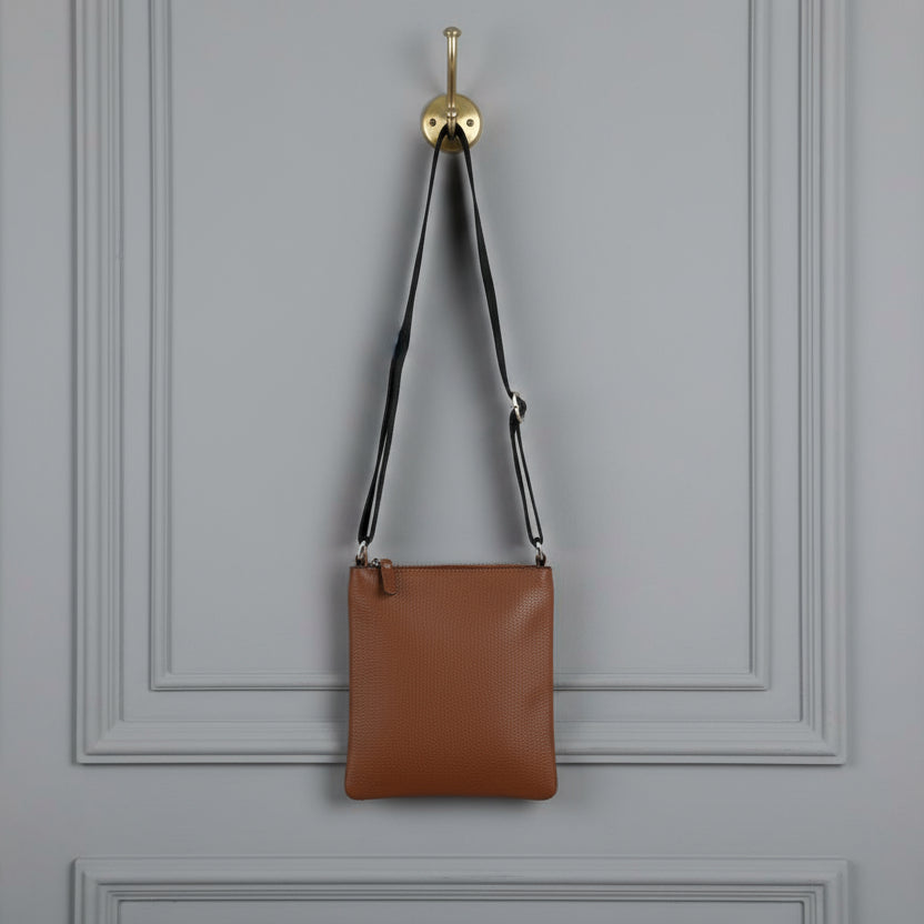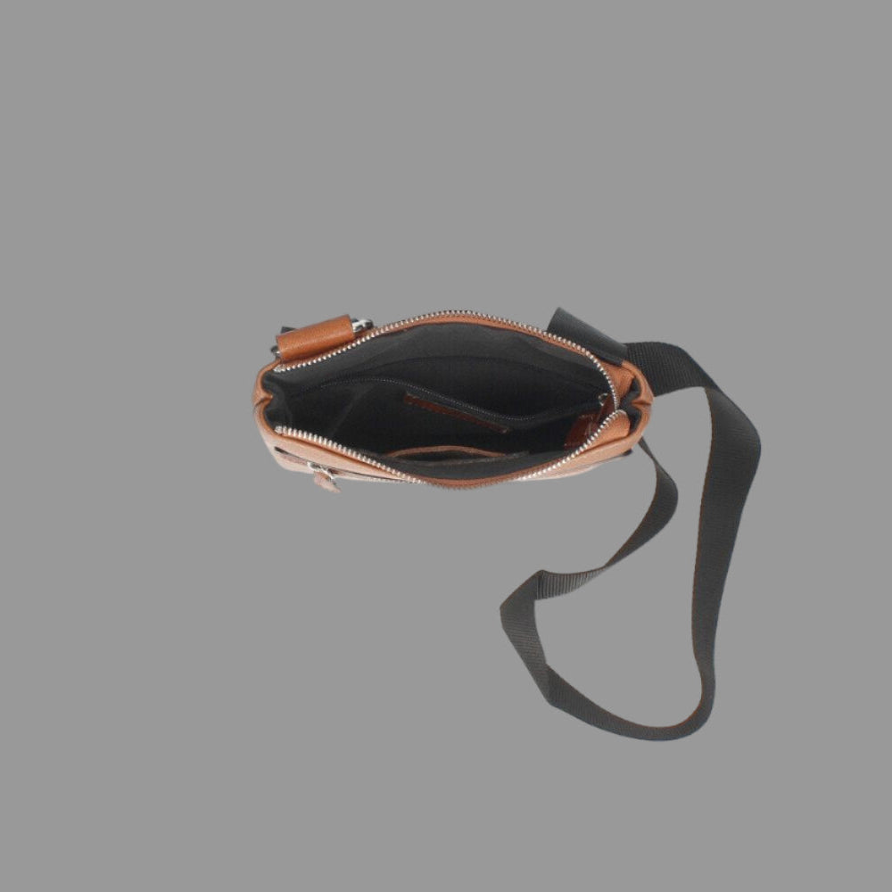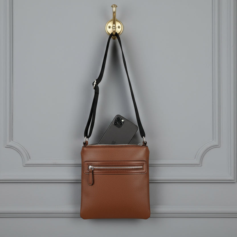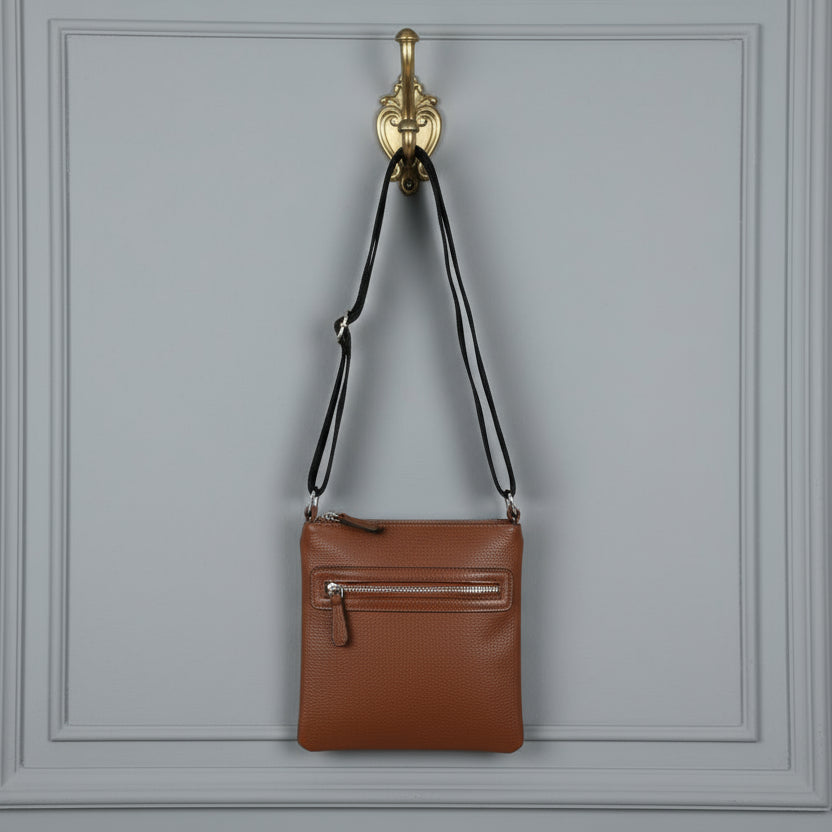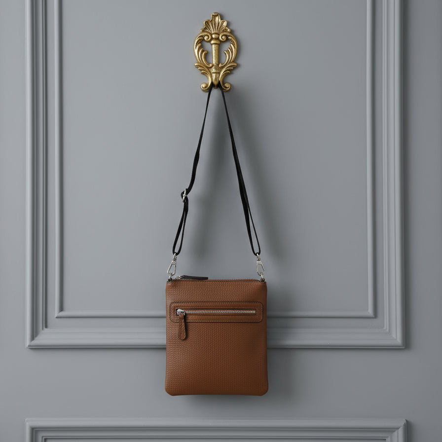 This leather crossbody bag features a zip closure, an external pocket, and an internal pocket for organized storage. It comes with an adjustable fabric strap for comfortable wear. Measuring 21cm in width and 23cm in height, and weighing just 0.3 kg, it combines practicality with refined Italian craftsmanship.