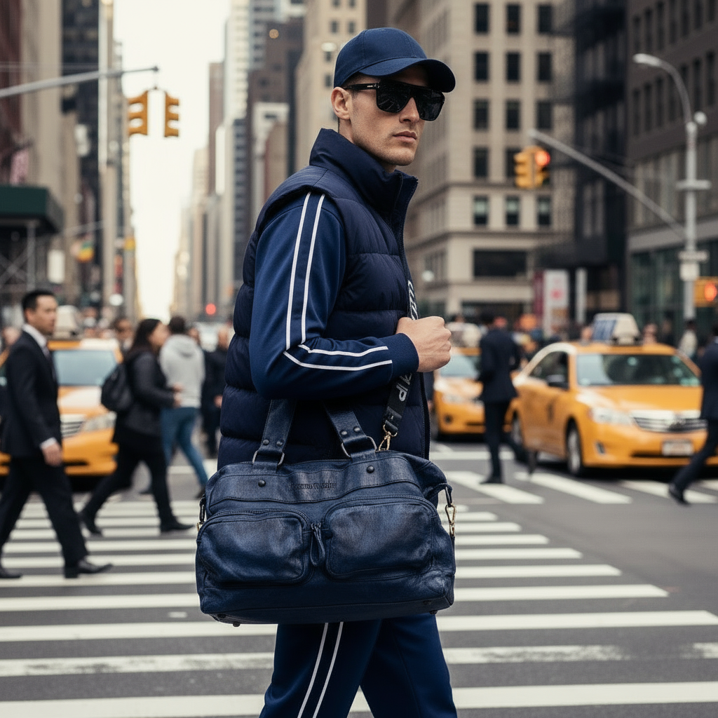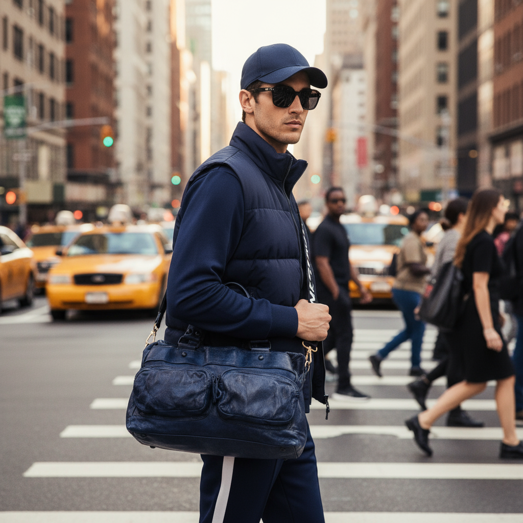 Indulge in luxury with our MT Washed Leather Bag in Denim Blue, handcrafted in Italy. Featuring an interior zip pocket, our signature Marco Tripoli logo, and a removable genuine leather strap, this bag is both elegant and functional. With two front pockets adorned with zippers and a mobile phone pocket, this bag has everything you need. This bag is the perfect addition to any sophisticated ensemble.