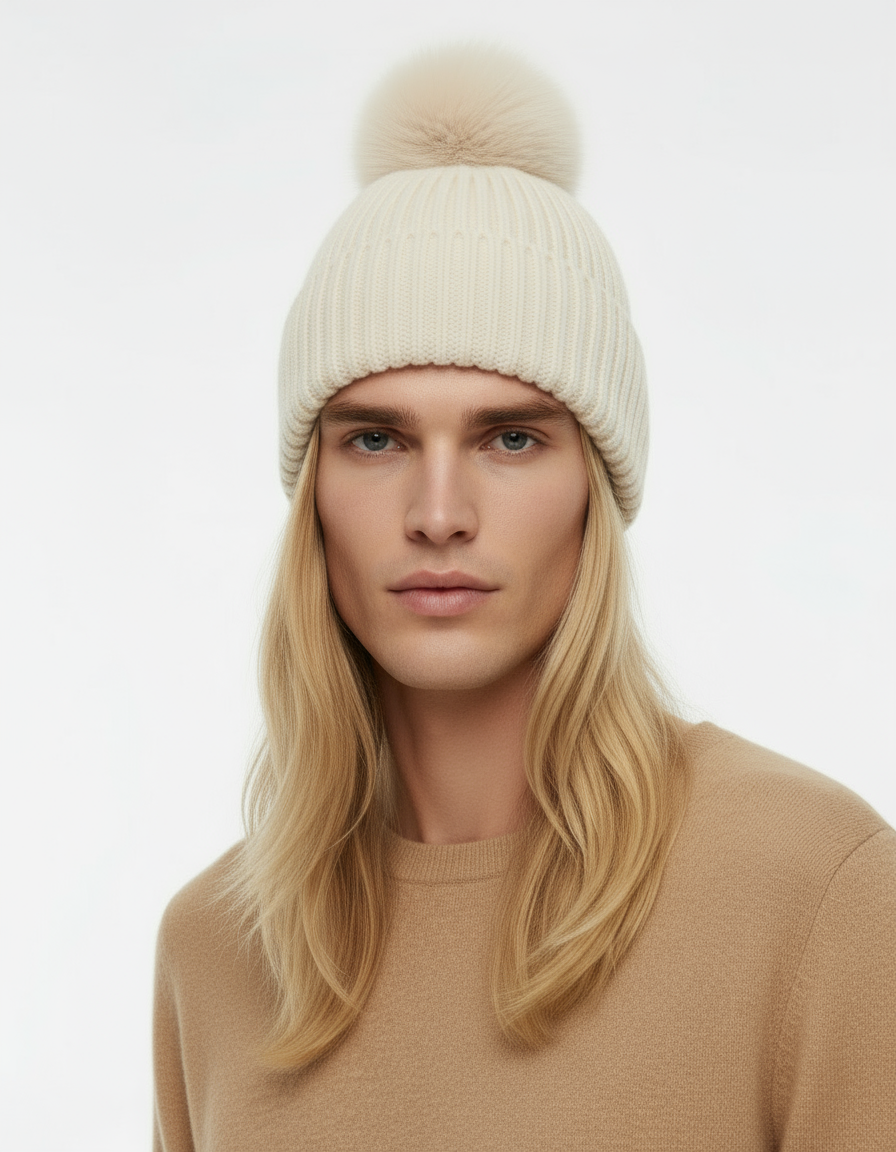 POM POM BEANIE IN CASHMERE & ANGORA , CREAM