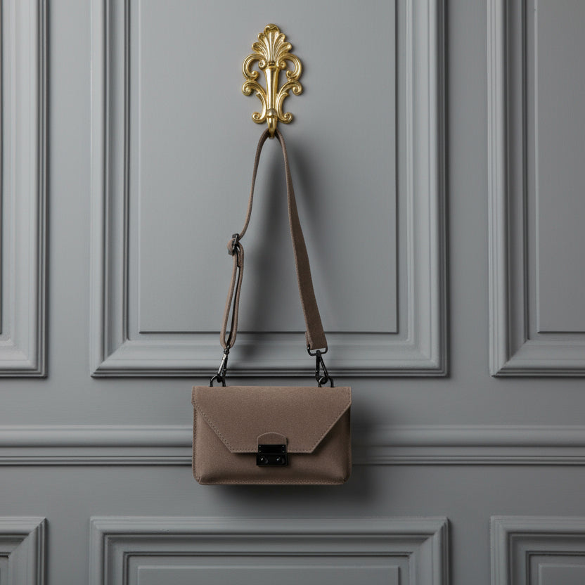 JOHNATHAN , SUEDE CROSSBODY BAG , DARK TAUPE