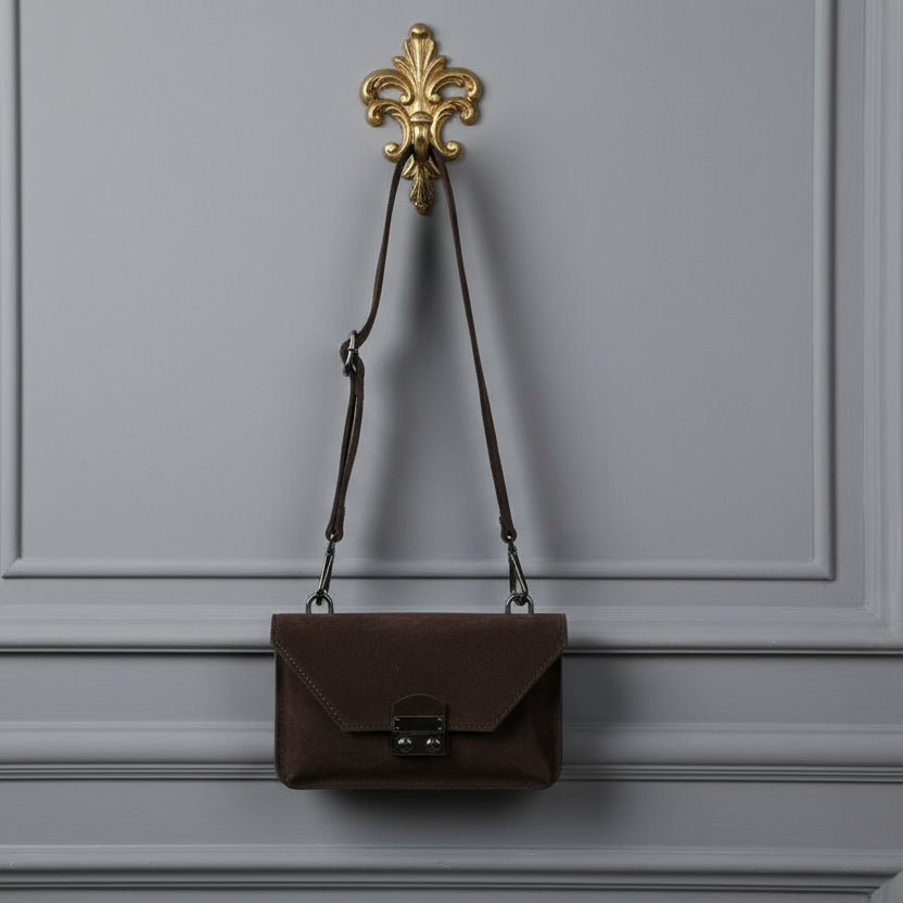JOHNATHAN , SUEDE CROSSBODY BAG , DARK CHOCOLATE