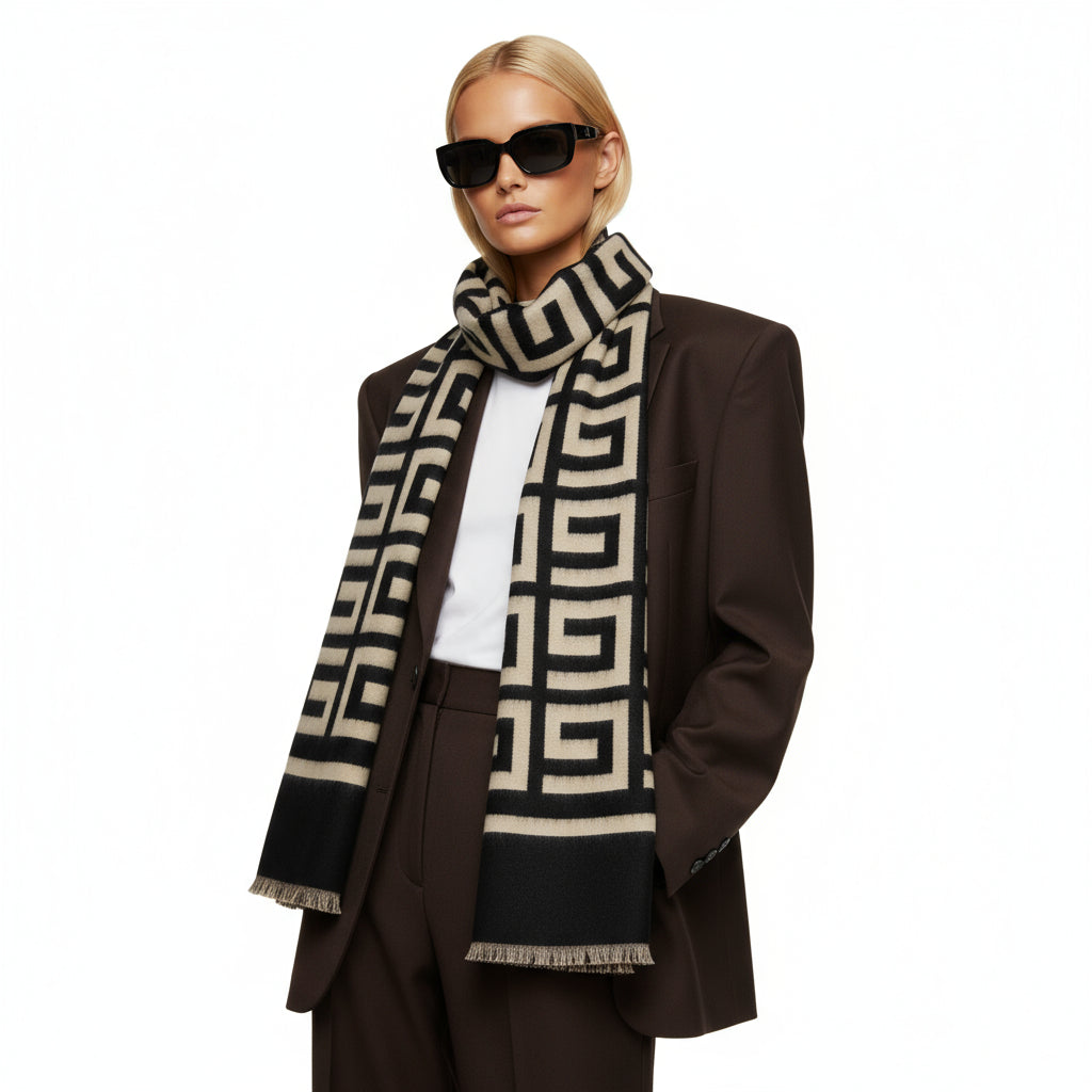 GABRIEL , CASHMERE MIX SCARF , BLACK AND OYSTER