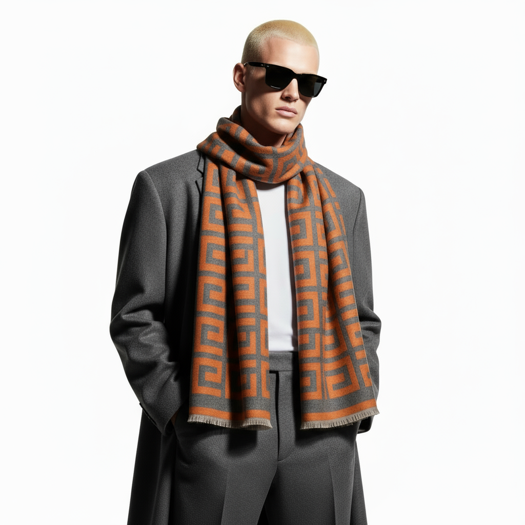 GABRIEL , CASHMERE MIX SCARF , GREY & ORANGE