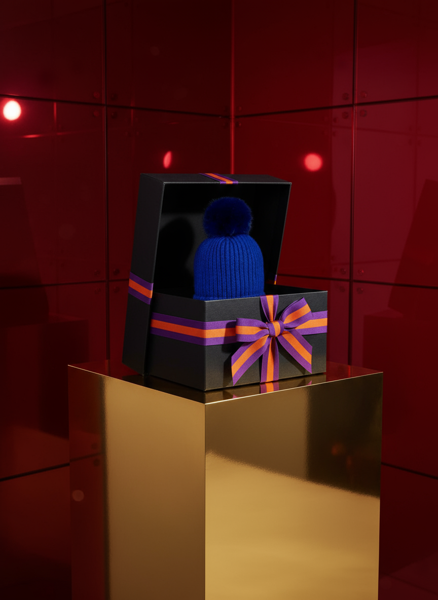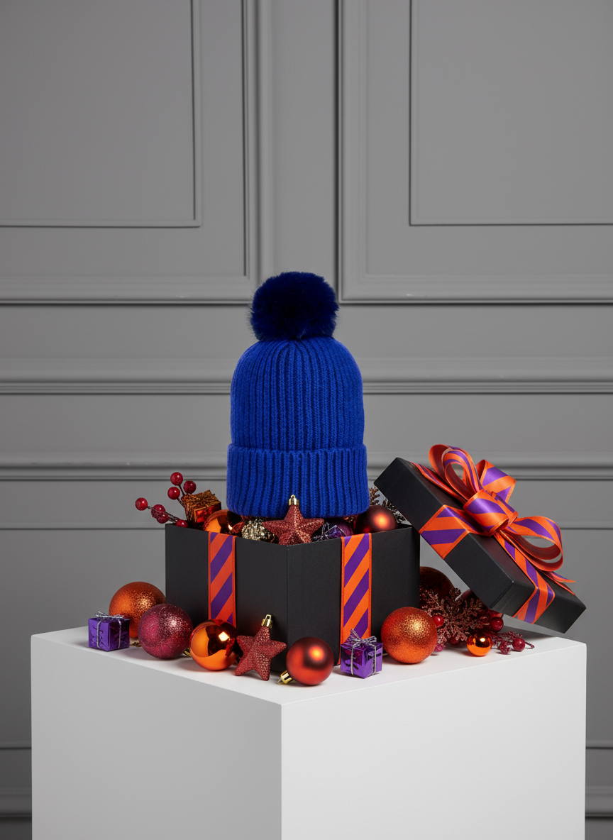 POM POM BEANIE IN CASHMERE & ANGORA , ROYAL BLUE