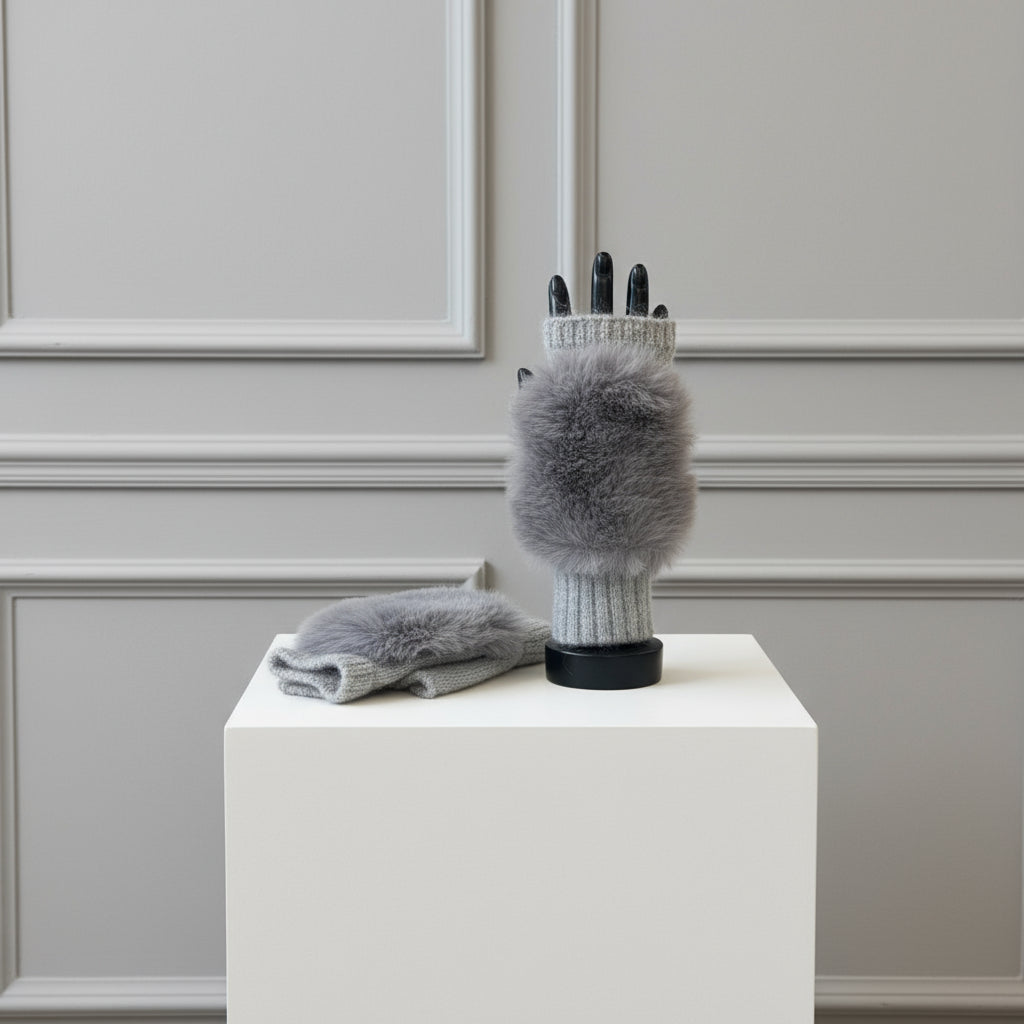 These sophisticated GAYNOR cashmere mix gloves combine the softness of cashmere with the warmth of angora, creating a luxurious accessory perfect for cooler days. The elegant vanilla color enhances their timeless appeal, while the fingerless design ensures both comfort and practicality, allowing freedom of movement for your fingers. Delicate faux fur detailing adds a touch of refinement, making these gloves an ideal choice for those seeking a blend of style and function. Whether layered or worn alone, they are a chic addition to any autumn or winter ensemble.