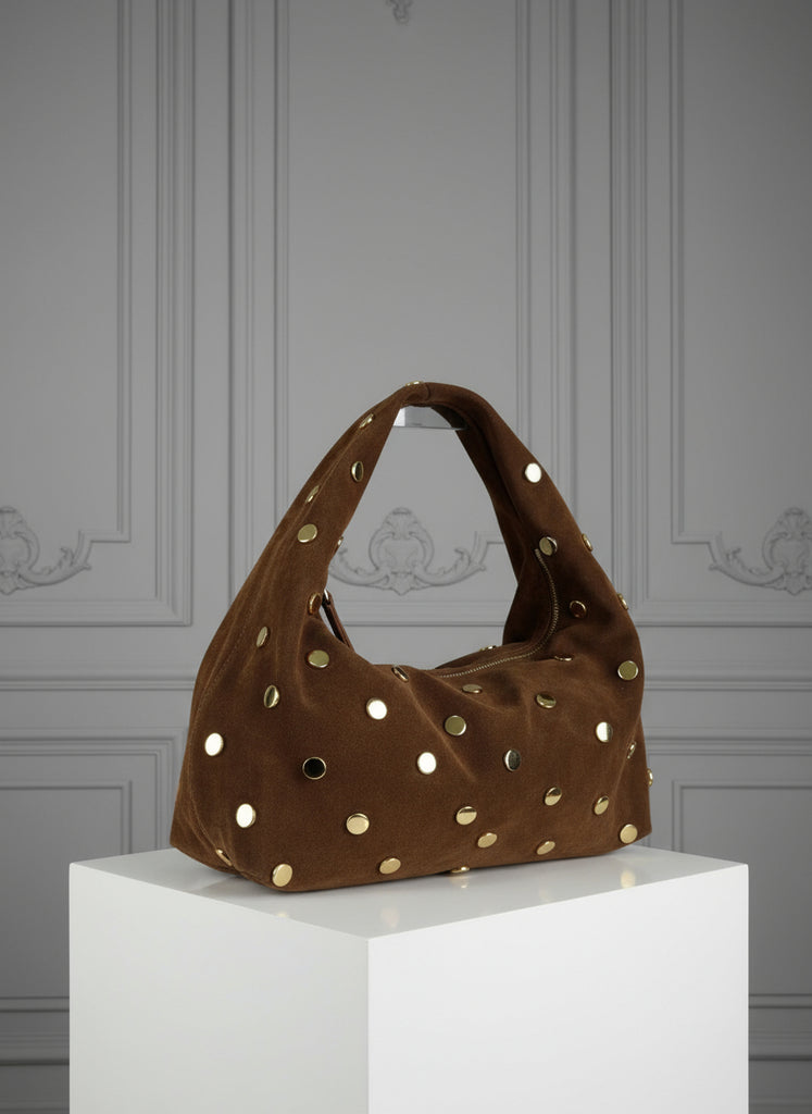 BEATRICE , GOLD STUDDS SHOULDER BAG , BROWN