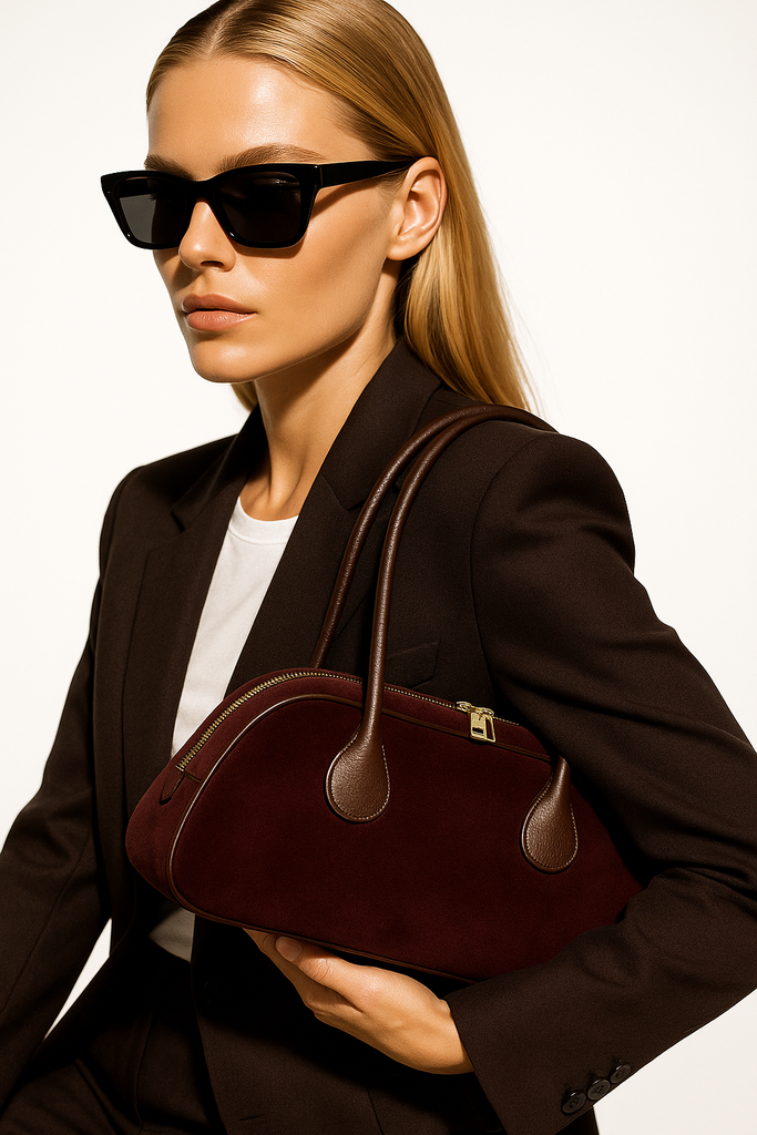 BEATRICE , GOLD STUDDS SHOULDER BAG , DARK CHOCOLATE