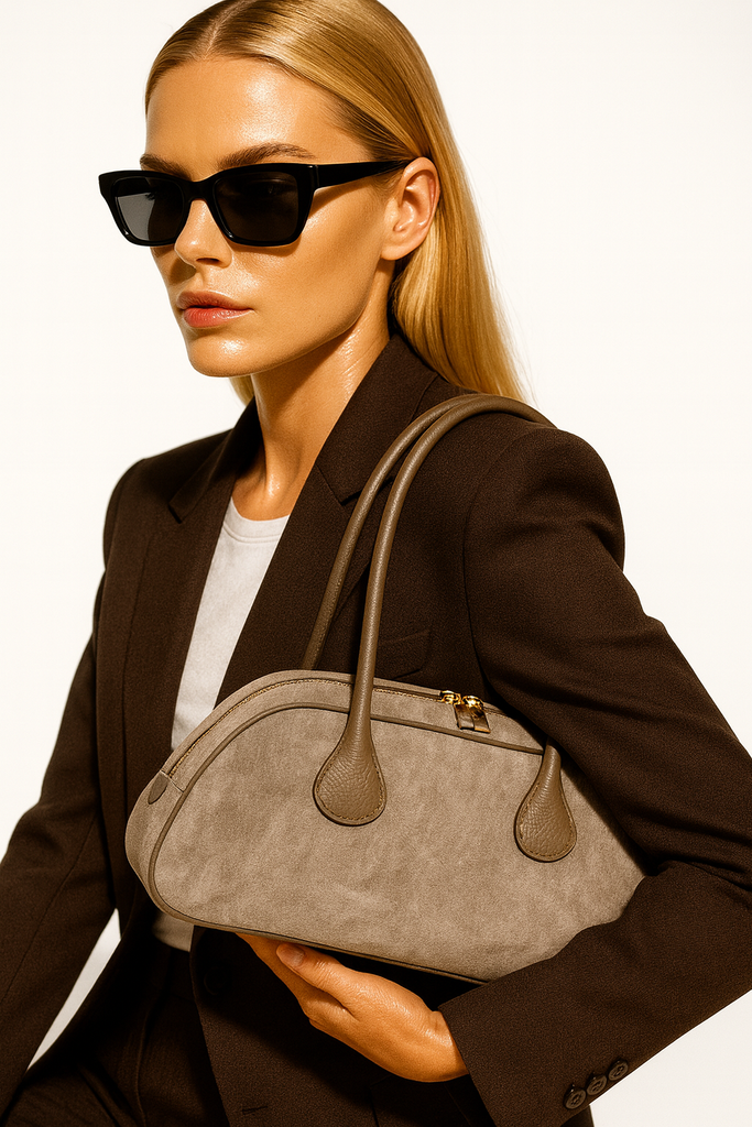 BEATRICE , GOLD STUDDS SHOULDER BAG , TAUPE