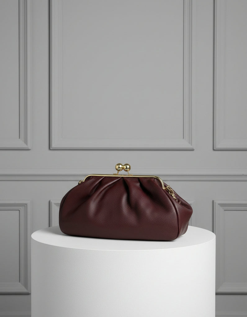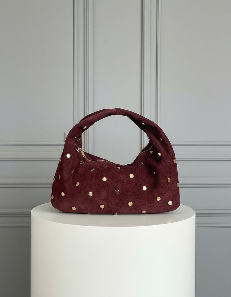 BEATRICE , GOLD STUDDS SHOULDER BAG , BORDEAUX