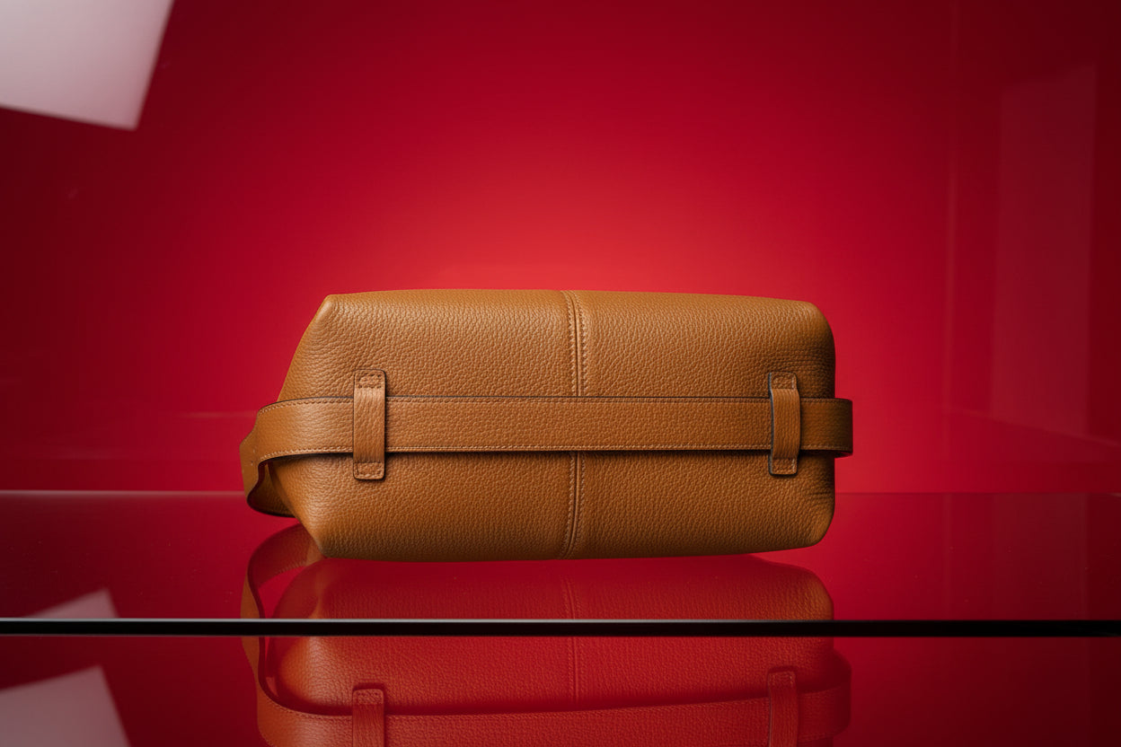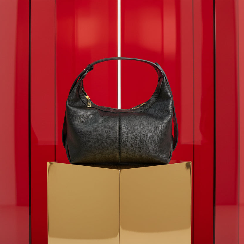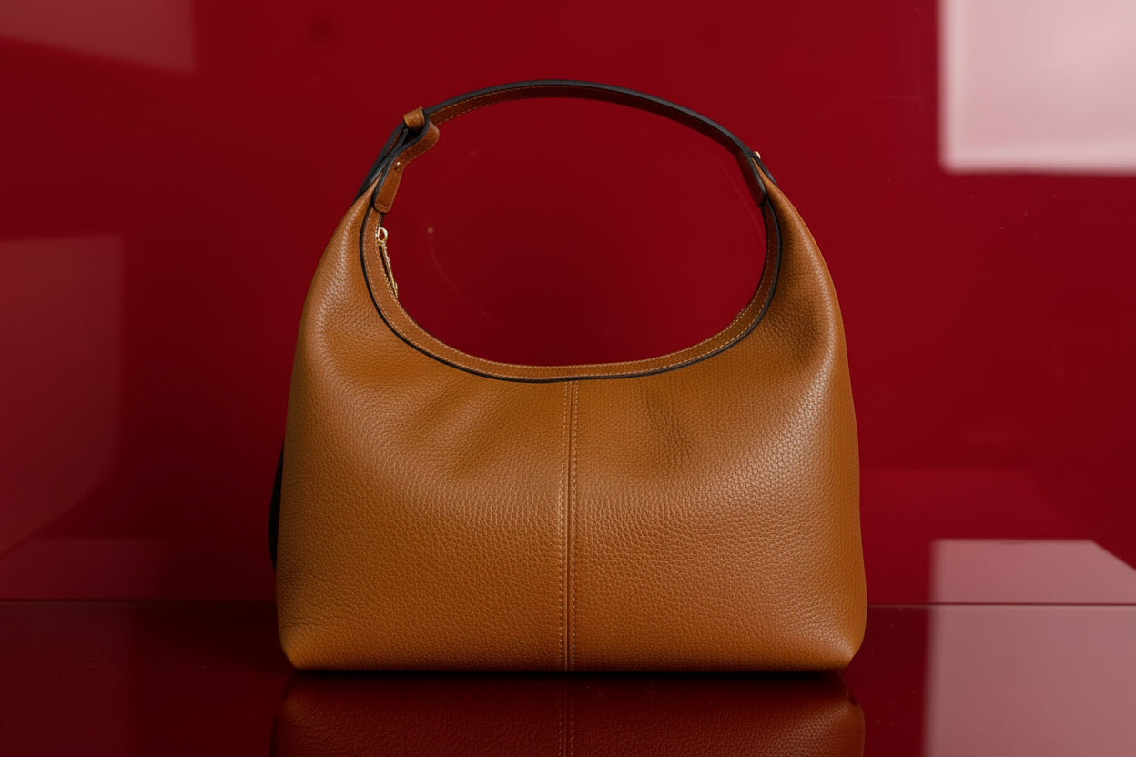 Crafted from supple pebble leather with refined gold-tone hardware, this Italian-made handbag transitions effortlessly from hand-carry to shoulder wear with its adjustable leather strap. The structured silhouette measures 33cm × 28cm × 14cm, offering practical capacity without compromise. Inside, a zip pocket keeps essentials secure, while the eco-leather lining reflects conscious craftsmanship. A rear exterior zip pocket adds convenient access. The secure zip closure and non-removable yet adjustable strap ensure versatility for modern urban styling.