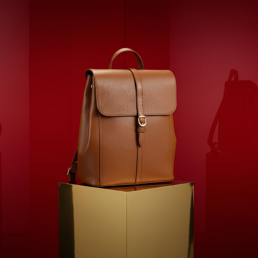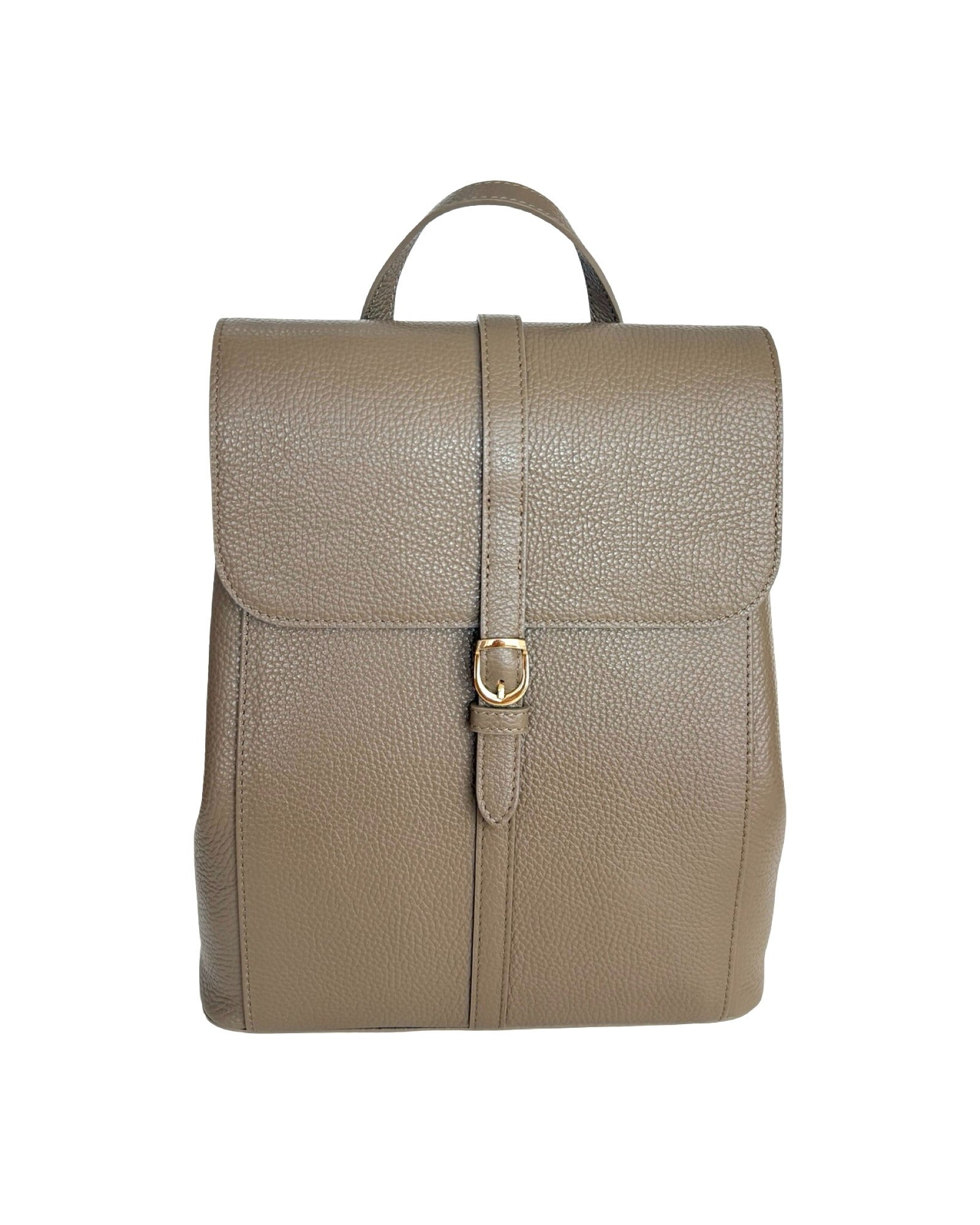 Crafted from supple pebble leather, this Italian-made backpack combines refined elegance with practical functionality. The structured silhouette measures 25cm wide × 30cm high × 12cm deep, offering generous capacity without compromise. Inside, a polyester-lined interior features an organised zip pocket for essentials, while polished gold-tone hardware adds a touch of luxury. A versatile companion for the discerning traveller.