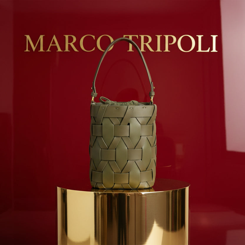 MARSEILLE , WOVEN LEATHER BUCKET CROSSBODY BAG , GREEN