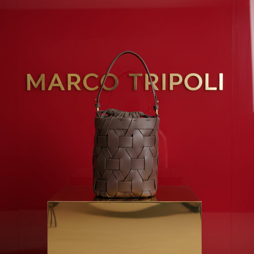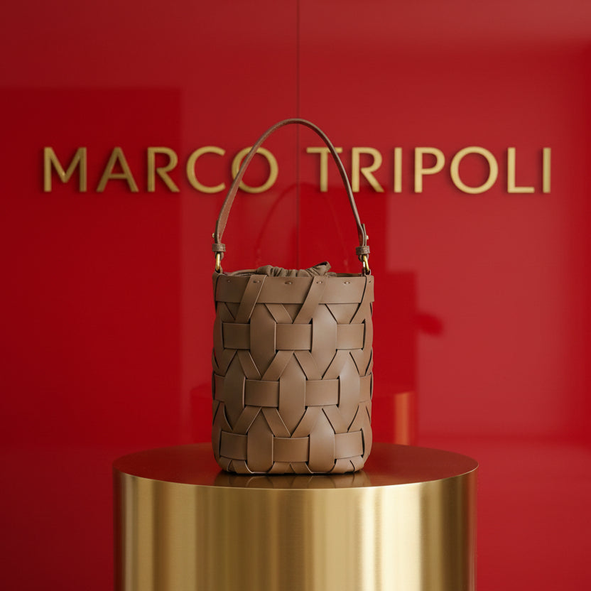 Crafted from supple leather with meticulous Italian artistry, this bucket crossbody marries refined functionality with understated elegance. The interior features luxurious eco-leather and Alcantara fabric lining, complete with a practical internal pocket and distinctive lace-up closure. A detachable leather shoulder strap and gleaming gold-tone hardware elevate the design, while its compact proportions—16 x 21 x 12 cm—make it an effortless companion for daily sophistication.