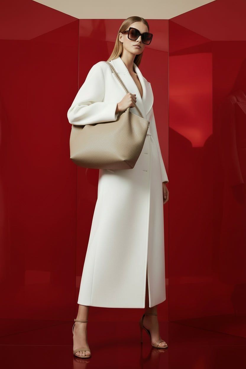 This refined leather shoulder bag combines Italian craftsmanship with understated elegance. The structured silhouette features a secure zip closure, interior zip pocket for valuables, and a single main compartment for effortless organisation. Polished gold-tone hardware and a supple leather strap complement the polyester lining. Measuring 45cm × 28cm × 12cm and weighing 0.8kg, it balances presence with practicality—a versatile companion for the discerning traveller or daily professional.
