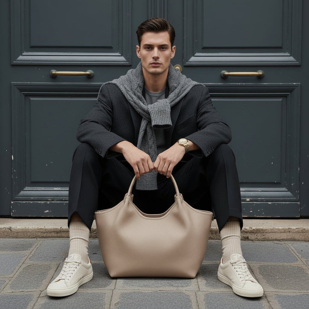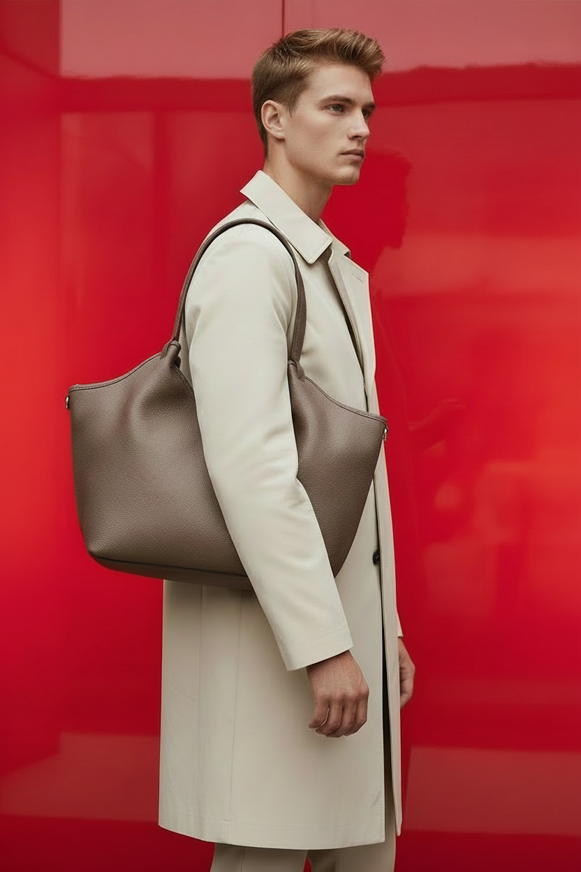 This refined leather shoulder bag combines Italian craftsmanship with understated elegance. The structured silhouette features a secure zip closure, interior zip pocket for valuables, and a single main compartment for effortless organisation. Polished gold-tone hardware and a supple leather strap complement the polyester lining. Measuring 45cm × 28cm × 12cm and weighing 0.8kg, it balances presence with practicality—a versatile companion for the discerning traveller or daily professional.