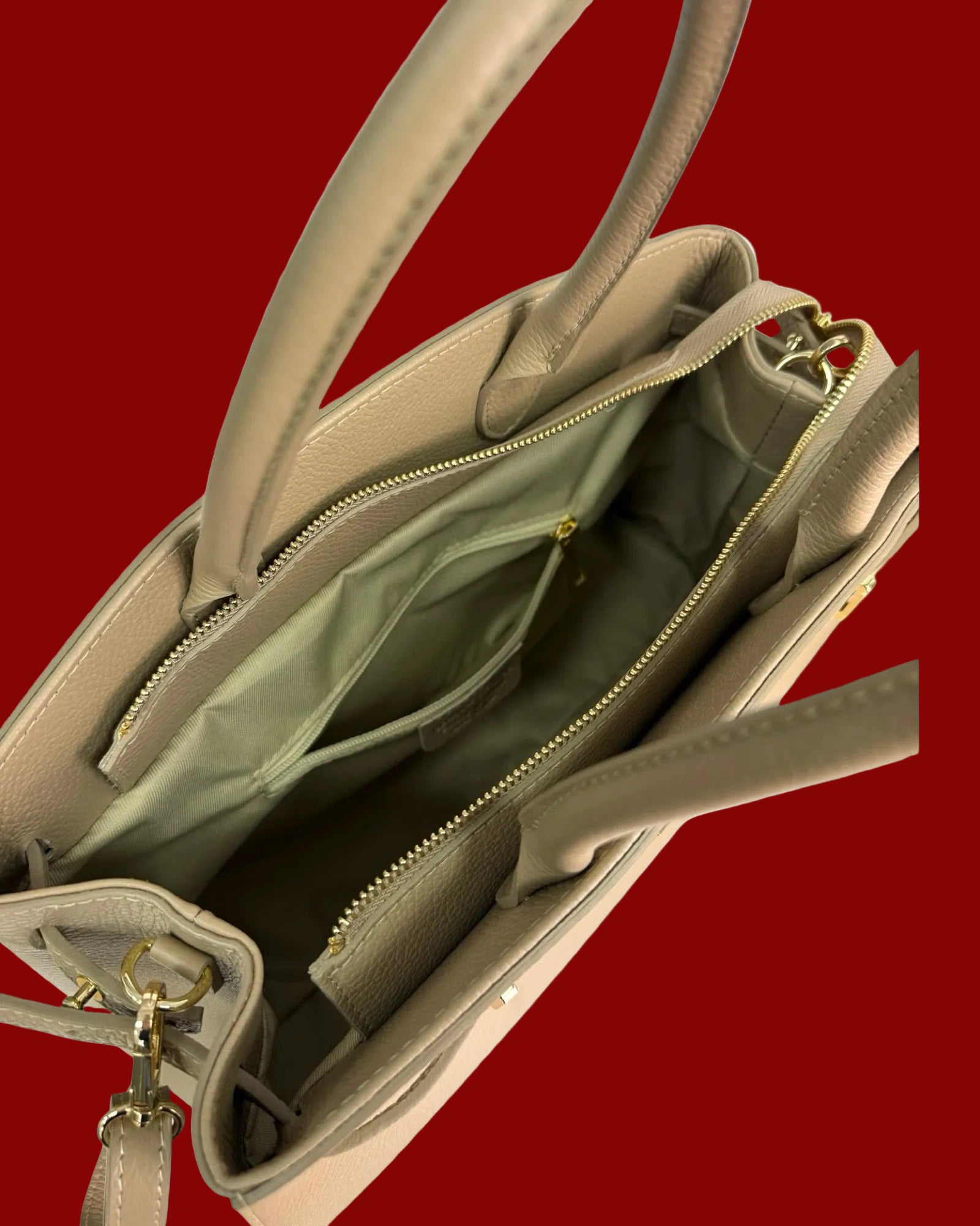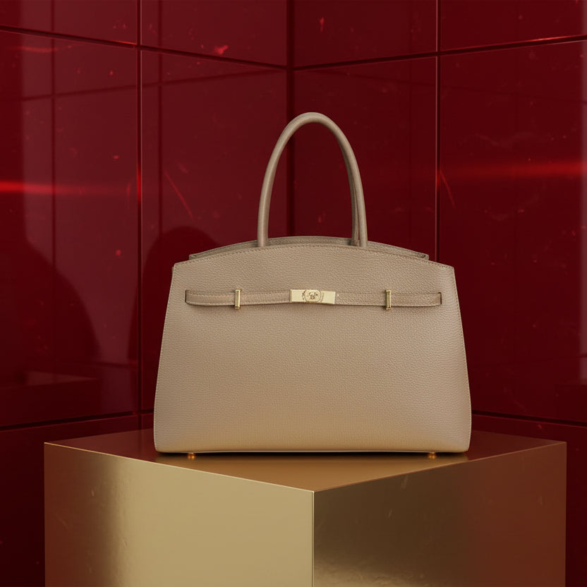 Crafted in Italy from pebble leather with polished gold-tone hardware, the Jacqueline Large Tote combines refined practicality with understated elegance. The secure zip closure and internal zip compartment keep essentials organised, while generous proportions—41cm wide, 29cm high, 10cm deep—accommodate a full day's essentials. An effortless companion for business travel, weekend escapes, or everyday sophistication.