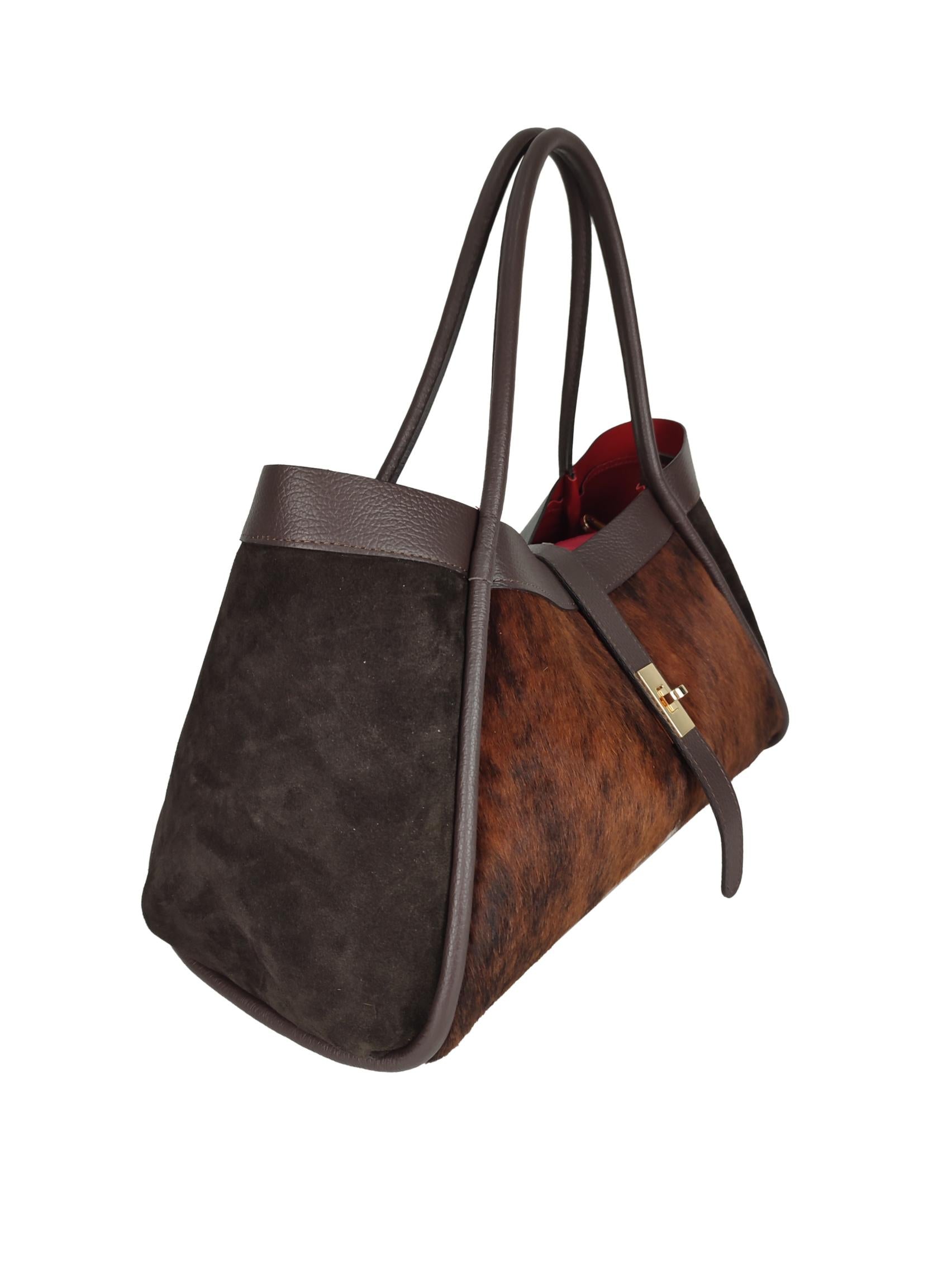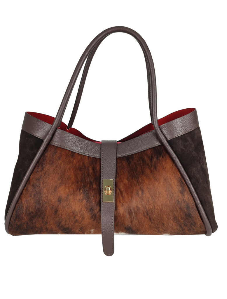 A must-have for the sophisticated traveler, the KARLA Large Tote Bag flaunts a spacious design crafted from luxurious calf skin and pebble leather . With a roomy base, this Italian-made beauty is perfect for carrying all your essentials in style. And let's not forget the exclusive gold metal accessories, adding a touch of elegance to your journey. Measuring W41cm x H20cm x D18cm, this is the epitome of luxury and practicality for your travels.