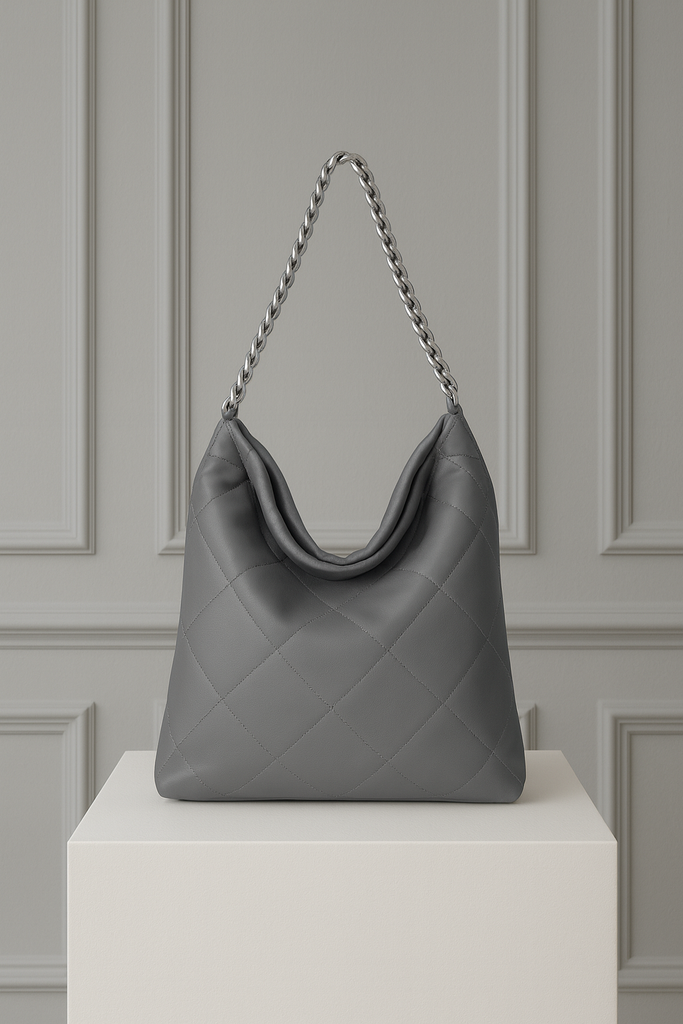 AURELIE , QUILTED LEATHER SHOULDER BAG , GREY