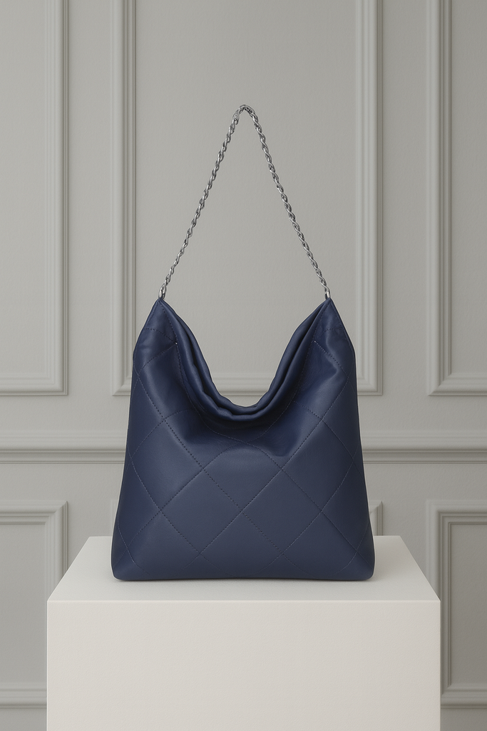 AURELIE , QUILTED LEATHER SHOULDER BAG , DENIM BLUE